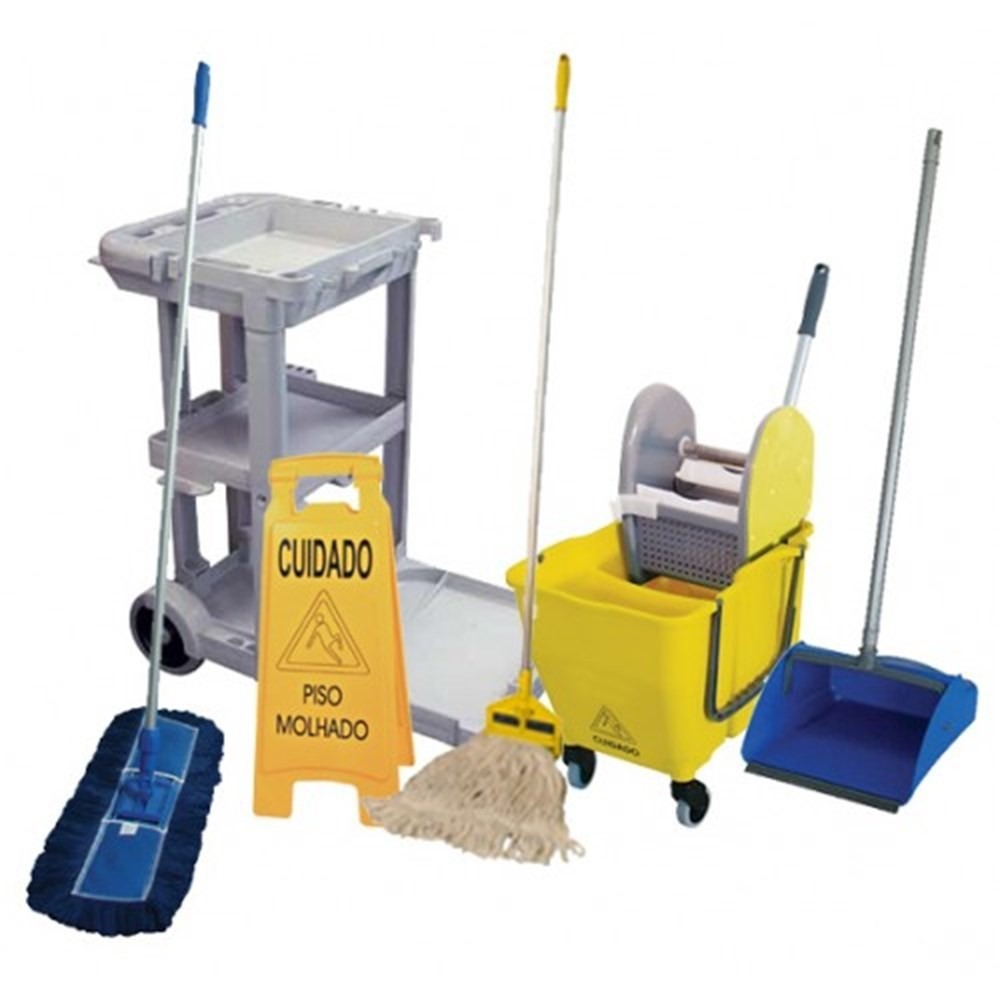 O Conjunto Mop Pó e a Pá Pop retiram as partículas com eficiência dos ambientes prevenindo que voltem a se depositar causando danos e doenças. A Placa Sinalizadora auxilia na prevenção de acidentes, como escorregões e quedas nos ambientes que estão sendo limpos.